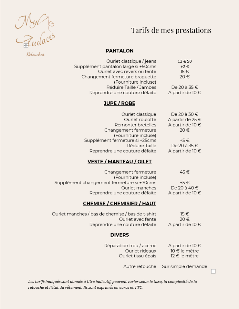 Ourlets, reprises, ajustements, réparations… je prends soin de vos pièces comme si elles étaient les miennes.
